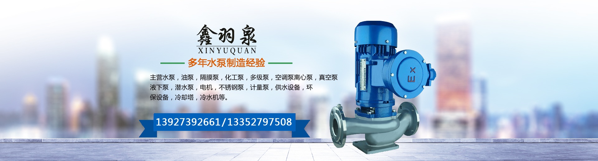 惠州鑫羽泉環保設備有限公司是廣東省規模最大的水泵機電設備公司之一。主營水泵,油泵,化工泵,多級泵,空調泵,離心泵,真空泵,液下泵,潛水泵,電機,不銹鋼泵,計量泵,供水設備,環保設備,冷卻塔,冷水機等是一家值得信賴的合作伙伴。品種齊全、質量過硬、價格合理,受到眾多用戶的好評。重信用、守合同、薄利多銷、質量第一、用戶第一、服務第一是我們經營的宗旨,公司擁有一批技術過硬、服務周到的銷售和技術團隊,愿意以最好服務,最好的技術,與所有新老客戶共同進步!不斷開發新品拓寬服務領域。公司現有產品共計近1000種規格。